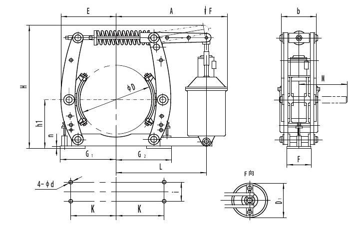 YWZ3B系列電力液壓鼓式制動器的連接尺寸和制動力矩參數符合GB6333-86標準,技術要求符合JB / T6406-2006標準, 本系列取代原YWZ3系列制動器。